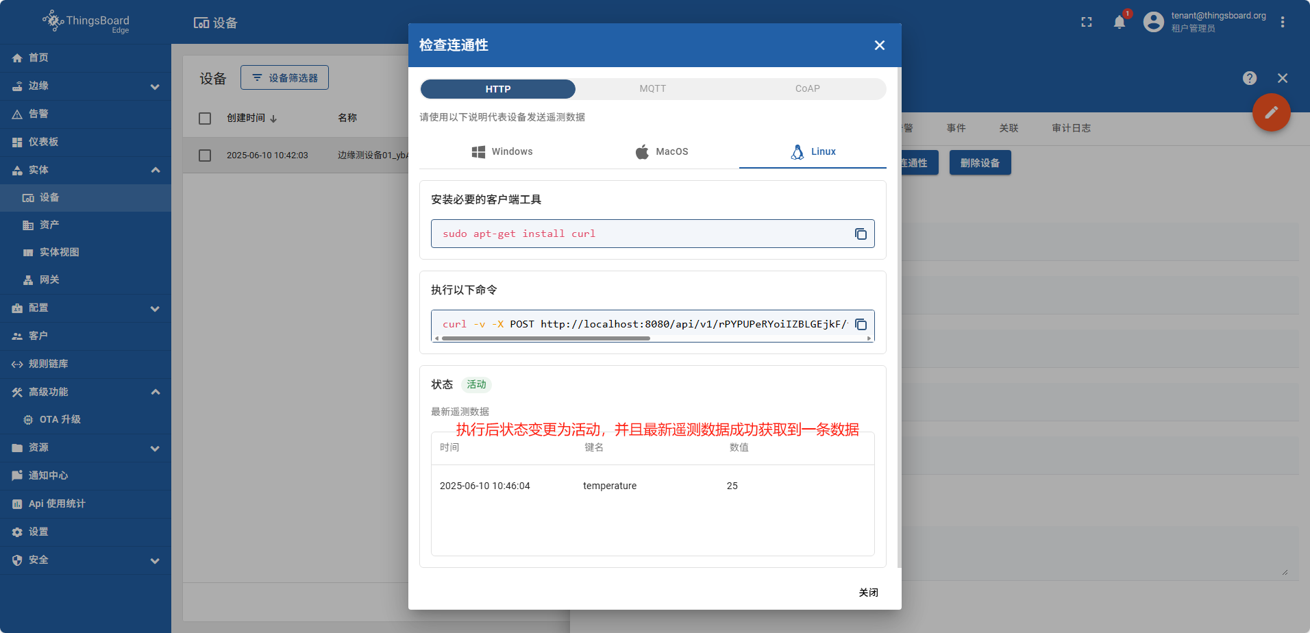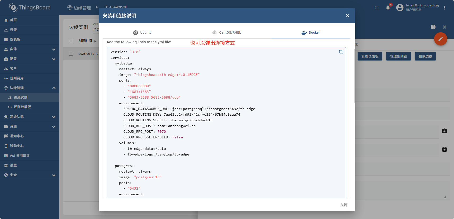 当边缘侧完成连接后,“安装和连接说明” 则变成了 “升级说明”