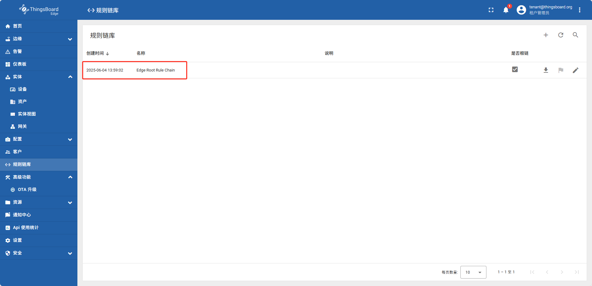 边缘侧数据推送到云使用的是规则链库中的默认模板规则 “Edge Root Rule Chain”