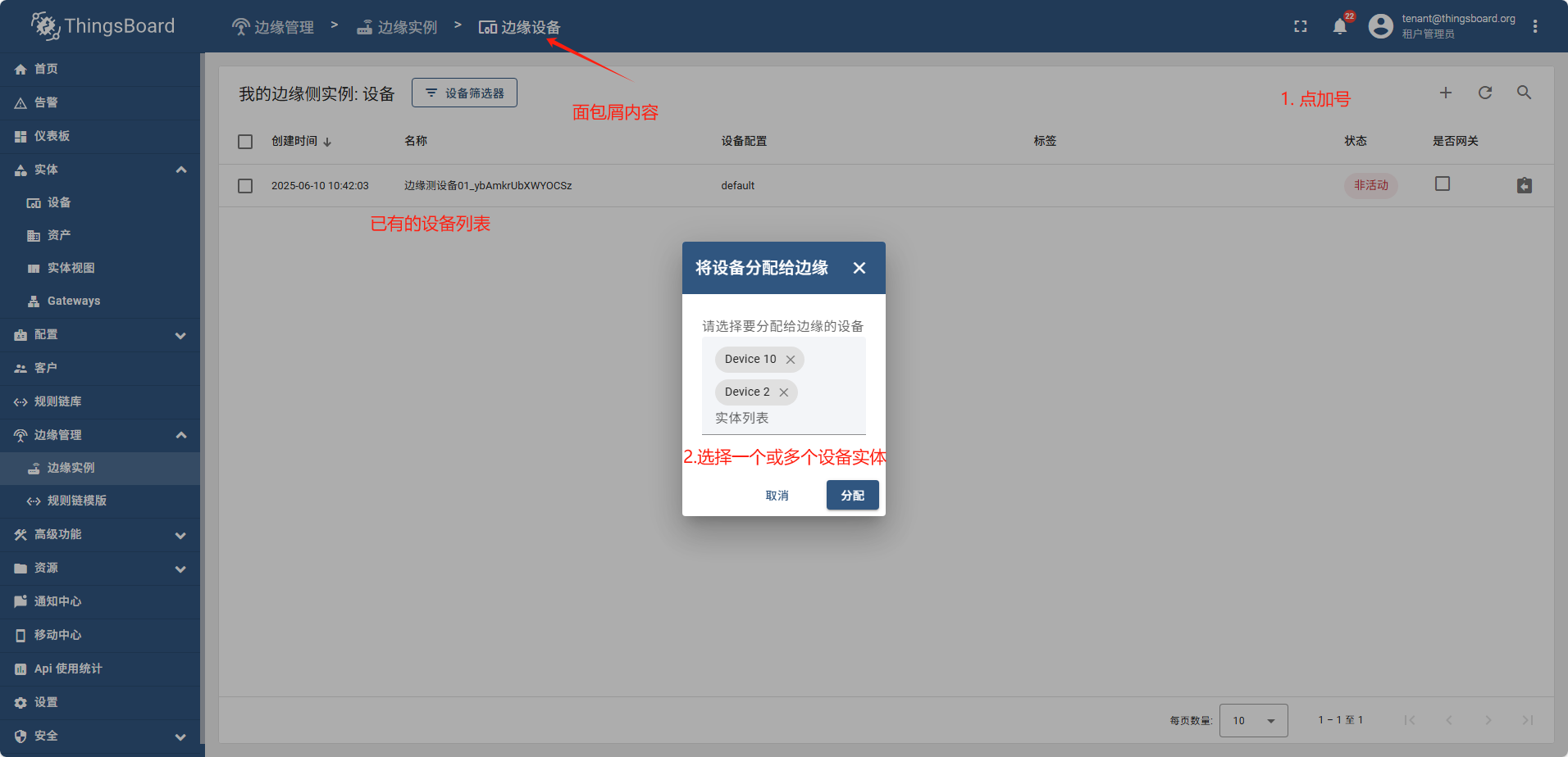 以下实体内容均可以从云端下发到边缘:资产 设备 实体视图 仪表板 规则链