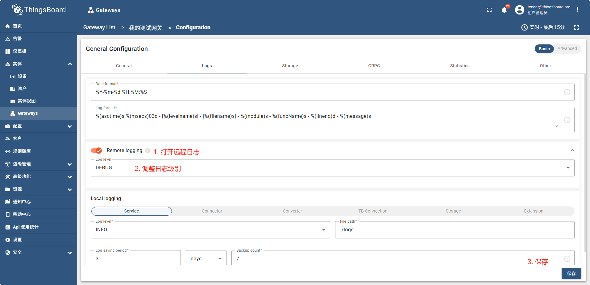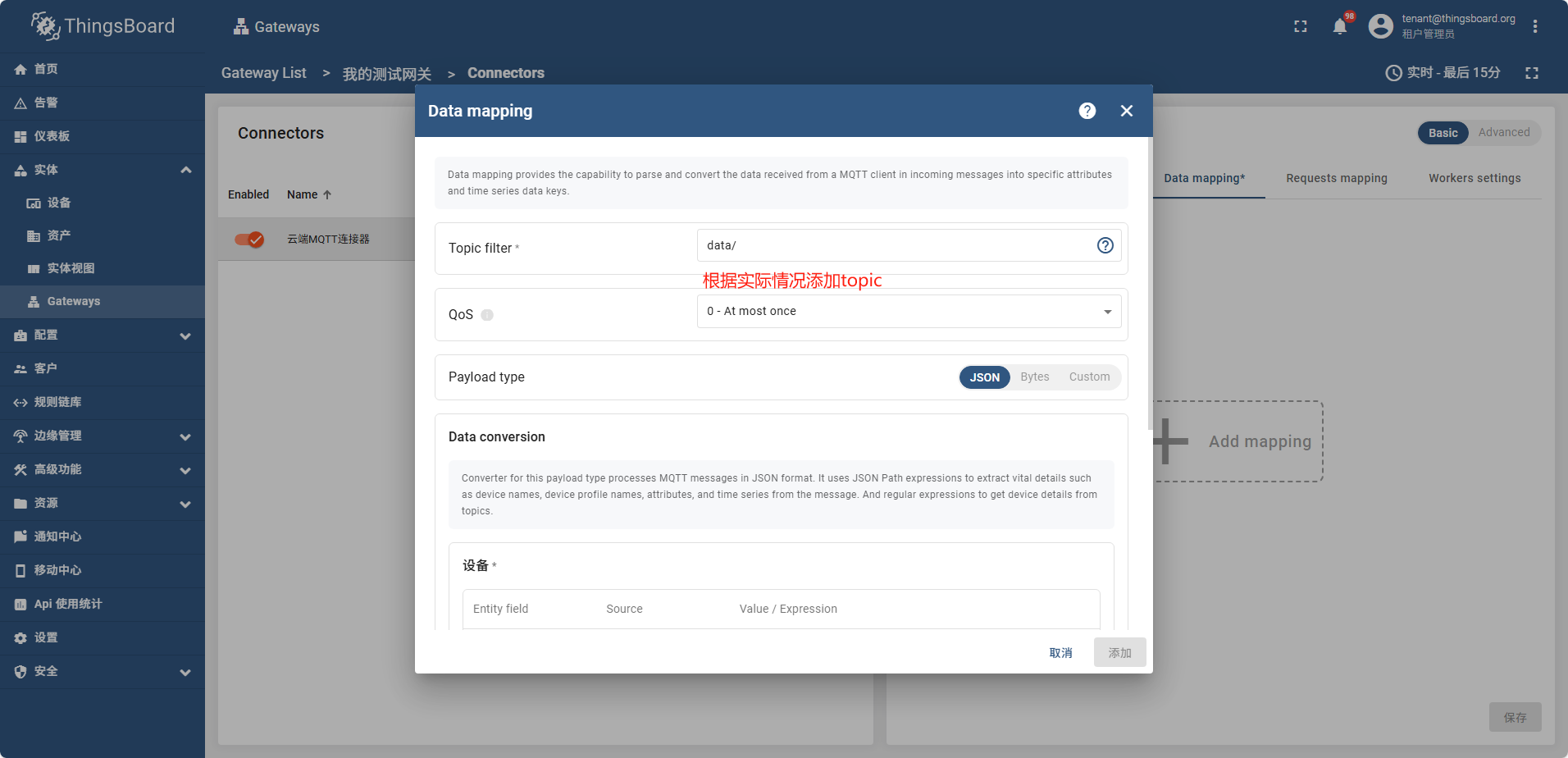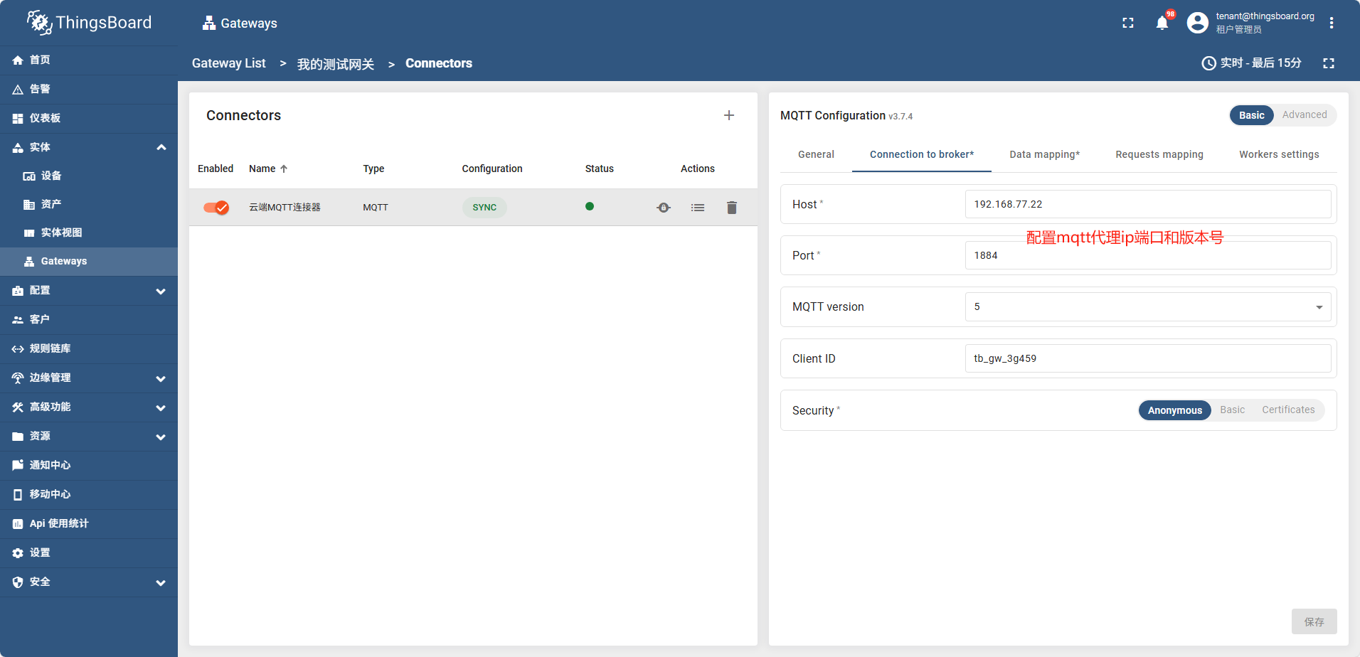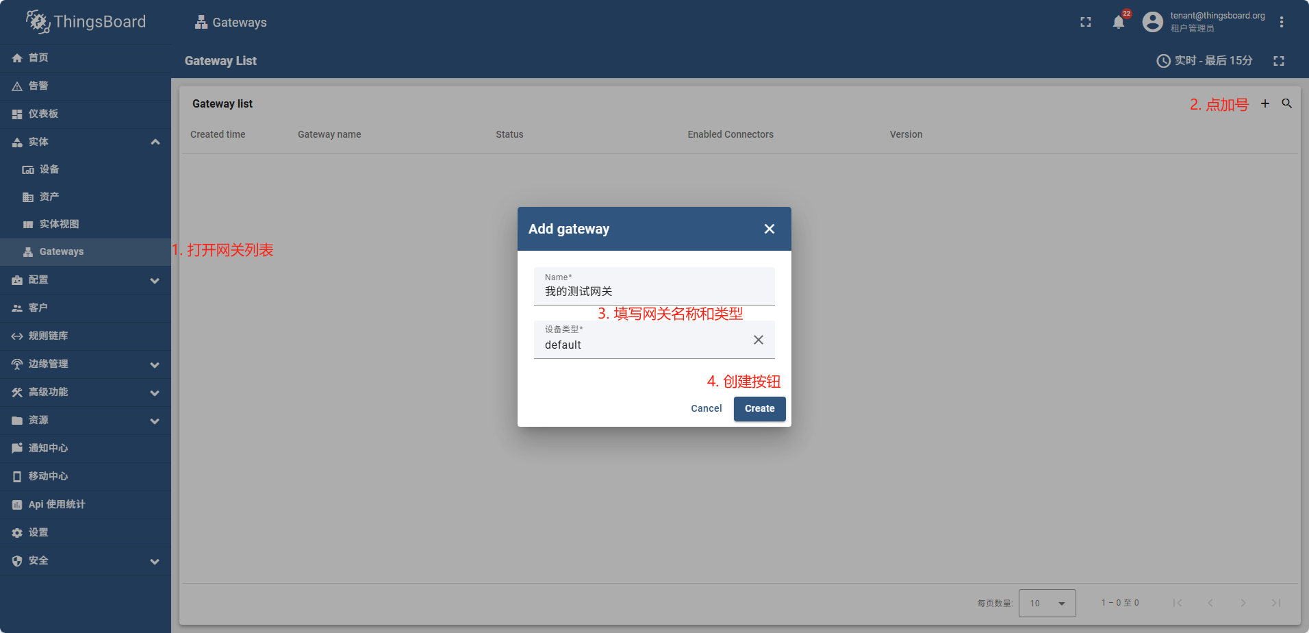 网关存在的目的是将已有的IOT系统数据采集到ThingsBoard平台(包括云服务和边缘服务)中
