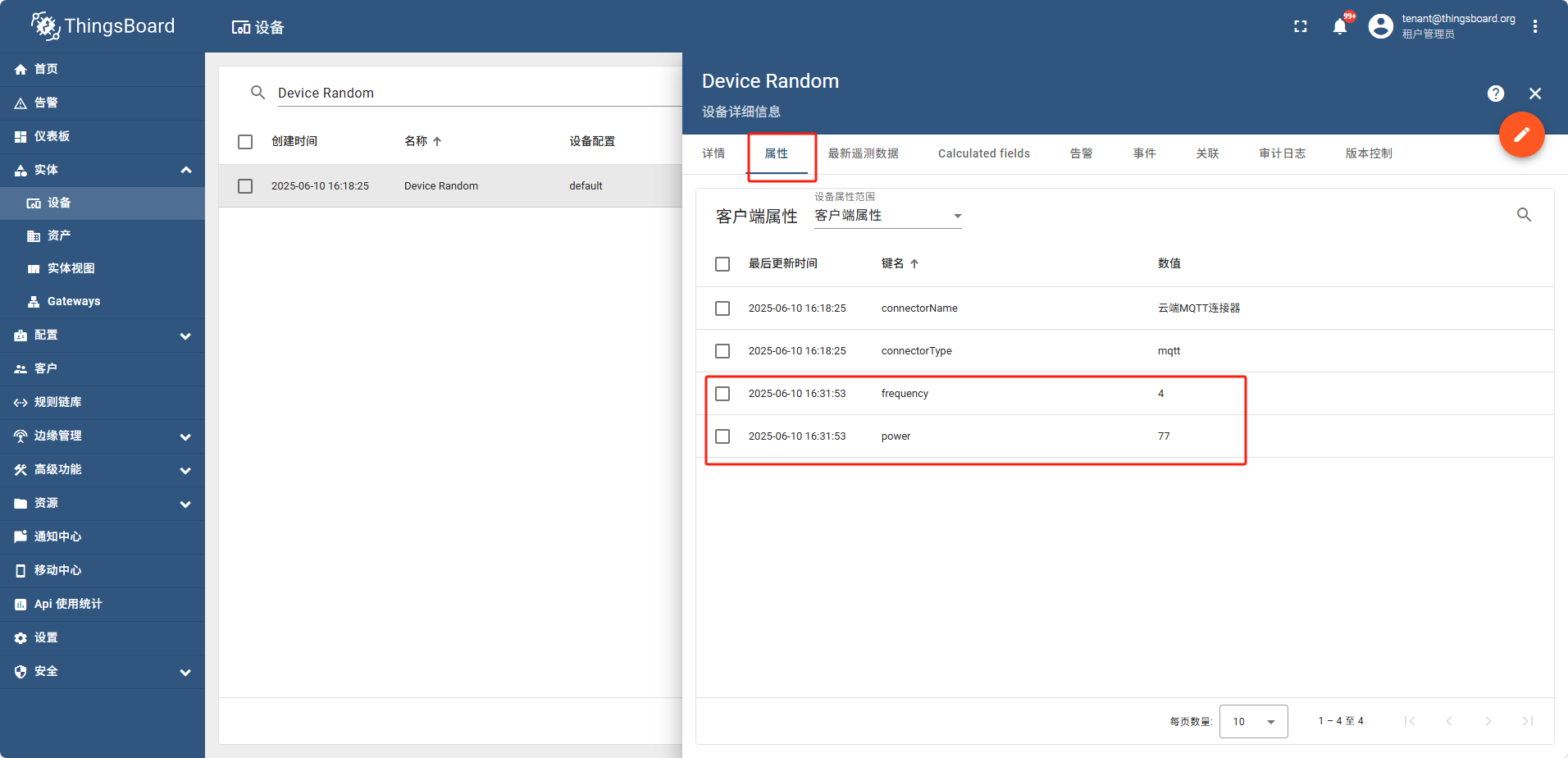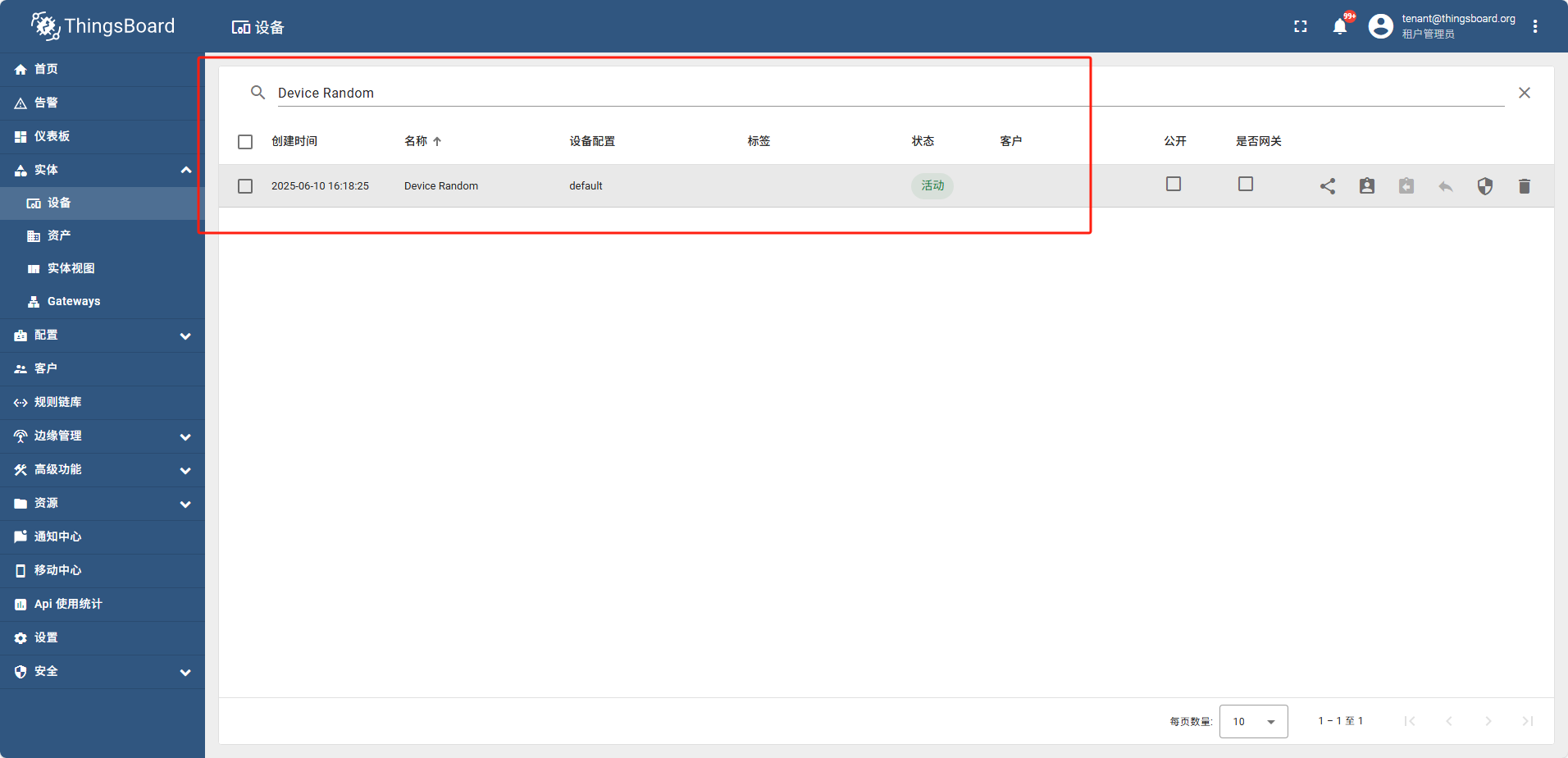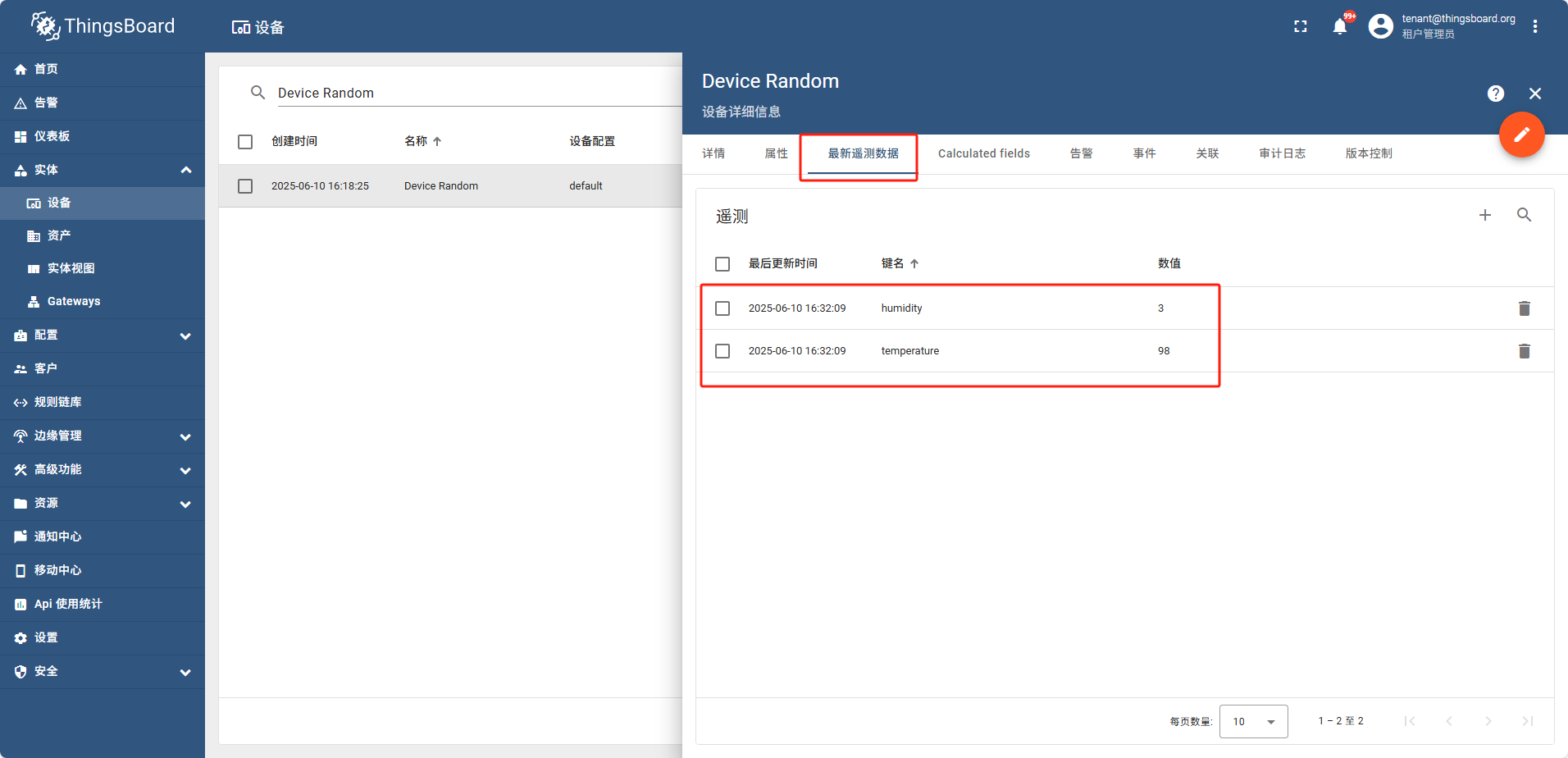 此时设备列表中也可以搜索到这个设备,并且属性tag页可以看到 temperature humidity