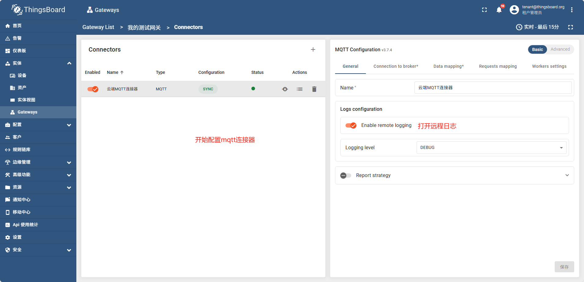 点保存后过一会,网关状态变成了绿色,说明网关成功连接了