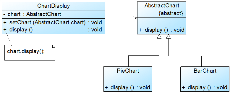 (2) ChartDisplay类针对抽象图表类进行编程,由客户端来决定使用哪种具体图表。