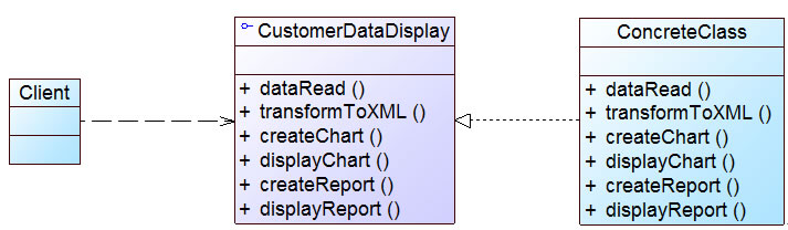Sunny软件公司开发人员针对某CRM系统的客户数据显示模块设计了如图1所示接口,其中方法dataRead()用于从文件中读取数据,方法transformToXML()用于将数据转换成XML格式,方法createChart()用于创建图表,方法displayChart()用于显示图表,方法createReport()用于创建文字报表,方法displayReport()用于显示文字报表。