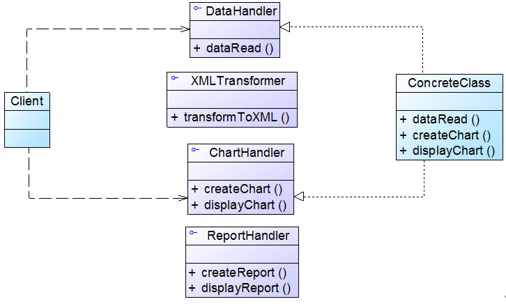 在实际使用过程中发现该接口很不灵活,例如如果一个具体的数据显示类无须进行数据转换(源文件本身就是XML格式),但由于实现了该接口,将不得不实现其中声明的transformToXML()方法(至少需要提供一个空实现); 如果需要创建和显示图表,除了需实现与图表相关的方法外,还需要实现创建和显示文字报表的方法,否则程序编译时将报错。