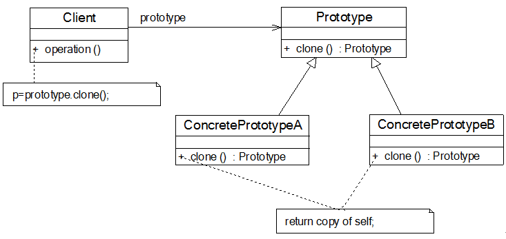 Prototype prototype = new ConcretePrototype(); //创建新对象