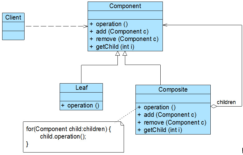 一般将抽象构件类设计为接口或抽象类,将所有子类共有方法的声明和实现放在抽象构件类中。对于客户端而言,将针对抽象构件编程,而无须关心其具体子类是容器构件还是叶子构件。