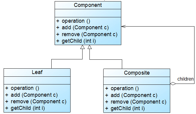 叶子对象不可能有下一个层次的对象,即不可能包含成员对象,因此为其提供add()、remove()以及getChild()等方法是没有意义的,这在编译阶段不会出错,但在运行阶段如果调用这些方法可能会出错(如果没有提供相应的错误处理代码)。