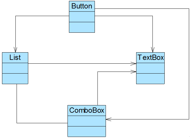 (3) 系统的可扩展性差:如果在上述系统中增加一个新的组件类,则必须修改与之交互的其他组件类的源代码,将导致多个类的源代码需要修改,同样,如果要删除一个组件也存在类似的问题,这违反了“开闭原则”,可扩展性和灵活性欠佳。
