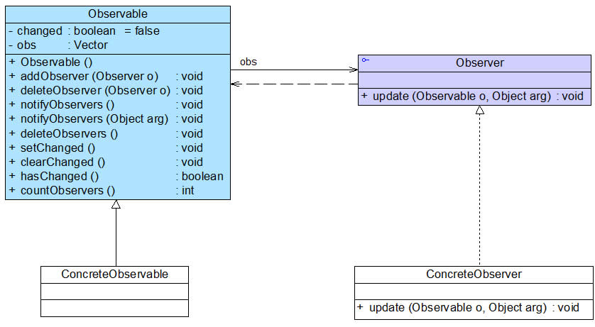 观察者模式在Java语言中的地位非常重要。在JDK的java.util包中,提供了Observable类以及Observer接口,它们构成了JDK对观察者模式的支持。