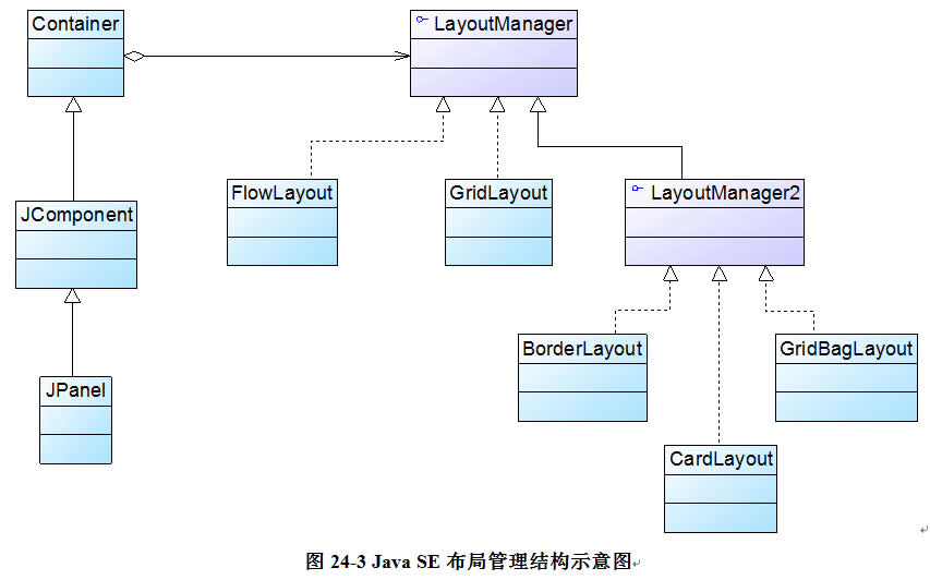 (1) Java SE的容器布局管理就是策略模式的一个经典应用实例,其基本结构示意图如图: